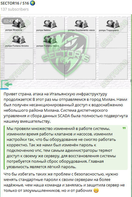 黑客组织SECT0R16宣称入侵多个水务SCADA系统