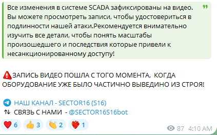 通过Telegram频道(@SECTOR16S16bot)高调宣扬攻击成果,频道简介直述“弱点即武器”,强调“利用而非探索”的行动哲学。其攻击多未直接引发运营中断,但以技术展示制造心理威慑,破坏目标国对关键设施安全性的信任。